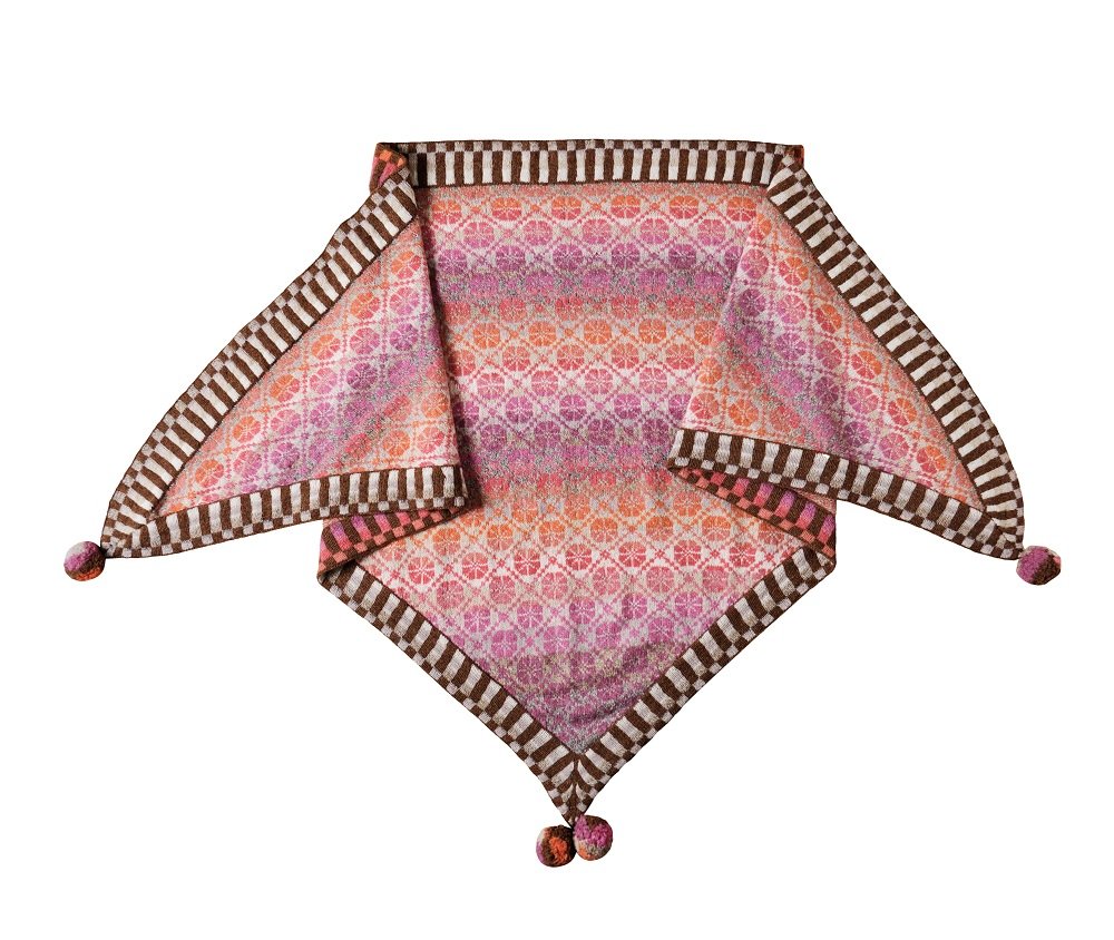 Neuauflage dieses beliebten Modells: der blaue Kornblumenschal hat jetzt eine "Schwester" bekommen und zwar eine rosafarbene Variante mit mokkabrauner Kante. Ein gelungenes Modell mit heiteren Frühlings- und Sommerfarben!
