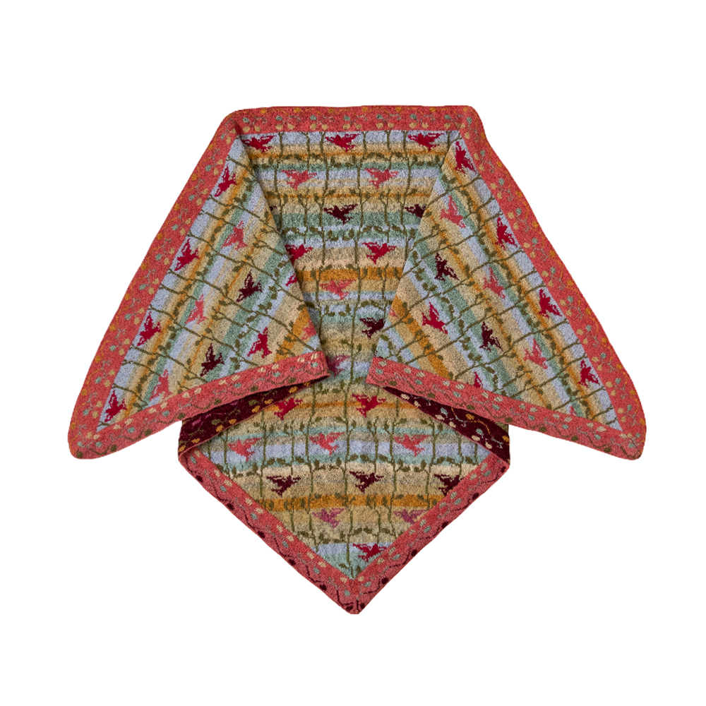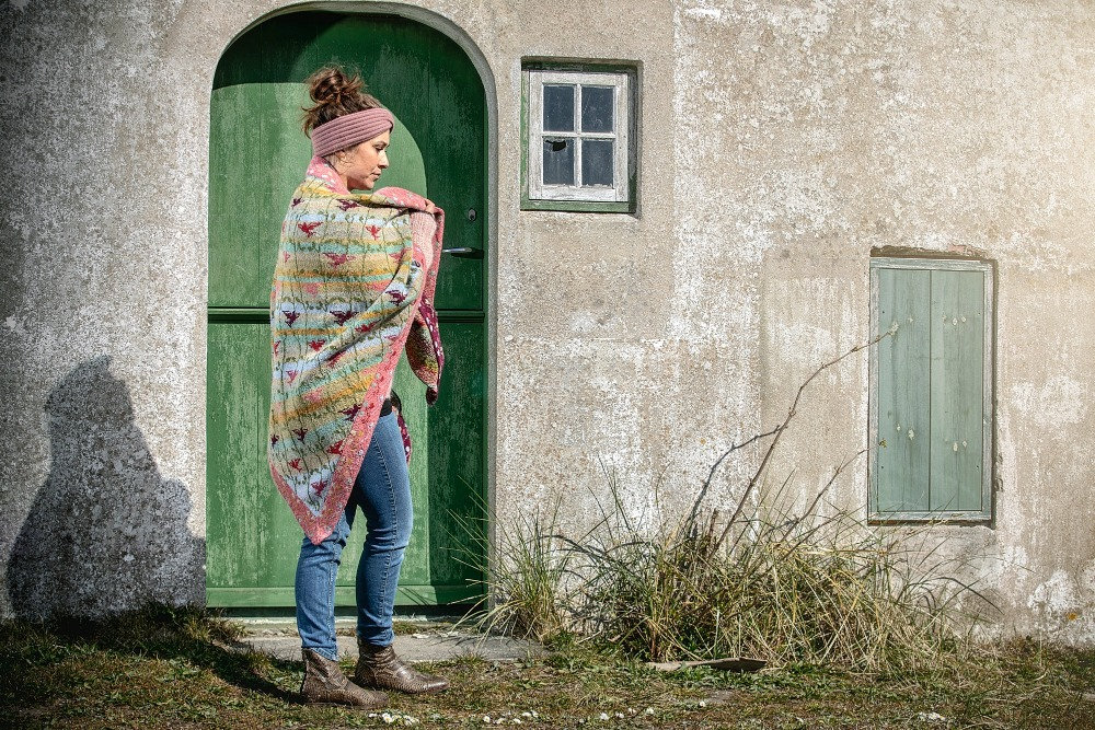 Ein schönes neues Tuch, inspiriert von den Vögeln an den weiten Sandstränden Fanøs, der westlichsten Insel Dänemarks. Der warme Sand und die sanften Farben der Abendsonne am Strand inspirierte zu dieser Farbgebung.