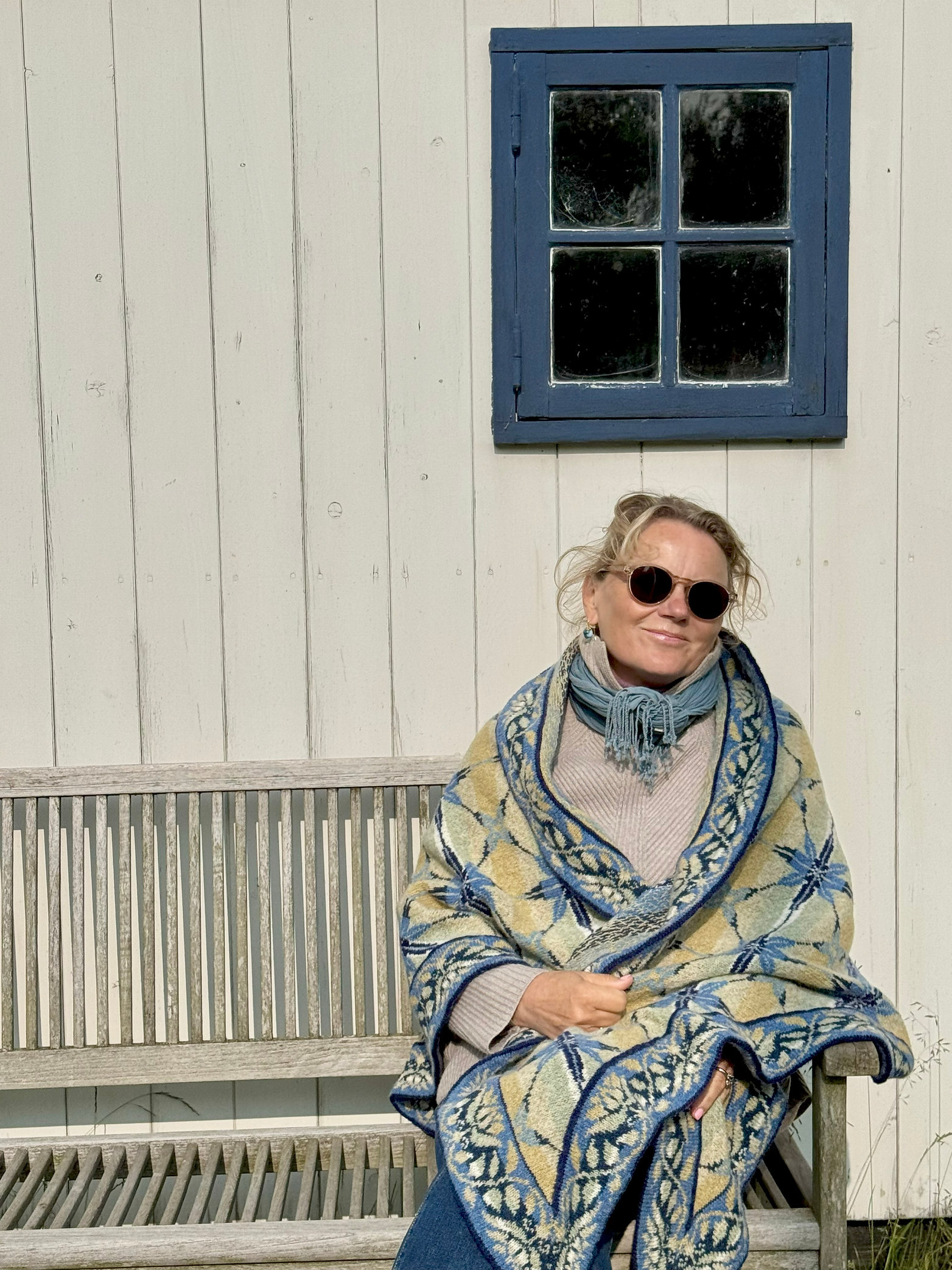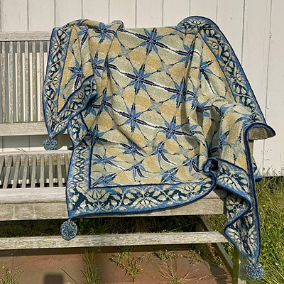 "Schon während ich saß und an diesem wunderschönen Tuch strickte, wusste ich, dass ich ein neues Lieblingsstück entworfen hatte. Ich finde es einfach unglaublich schön – harmonisch in Muster und Farbkombination – und es hat zudem eine wunderbare Geschichte. Die Inspiration stammt von den kunstvoll gefliesten Wänden der Häuser auf Fanø. Alles, was meine Fanø-Geschichte ausmacht, ist in dieses Tuch eingestrickt. Doch es strahlt auch das Leben auf der Insel aus – Strand, weiter Himmel und ENTSPANNUNG."